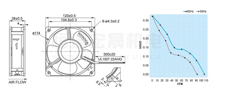 UF12A23BTH FULLTECH福佑風機結構風量圖: