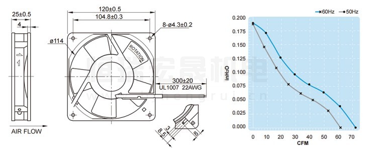 UF12B23BTH FULLTECH 福佑風機結構風量圖: