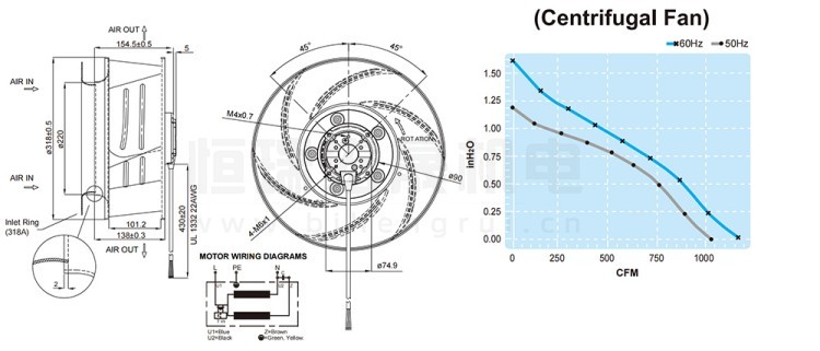 UF318AAA23H1C4A FULLTECH 福佑風機結構風量圖: