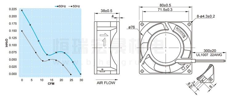 UF80A23BTH FULLTECH 福佑風(fēng)機(jī)結(jié)構(gòu)風(fēng)量圖: