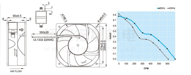 UF20JC23BTH FULLTECH 福佑風機結構風量圖: