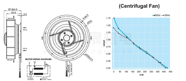 UF220APA23H2C2F FULLTECH 福佑風機結構風量圖: