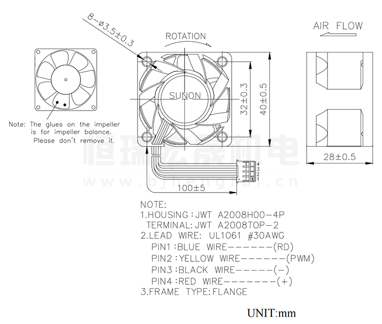 SUNON建準風機 40*40*28mm GF40282B2-Q021-Q99