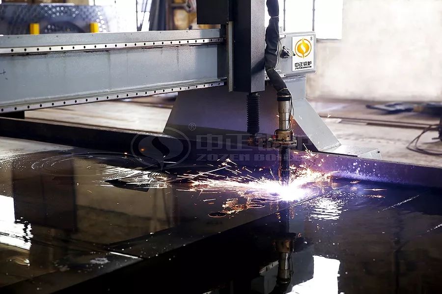 中正鍋爐使用的水下等離子切割相比火焰切割,沒有變形與飛濺,進一步提高了鍋爐各部件之間的組裝精度,進而實現整臺鍋爐的精準裝配。